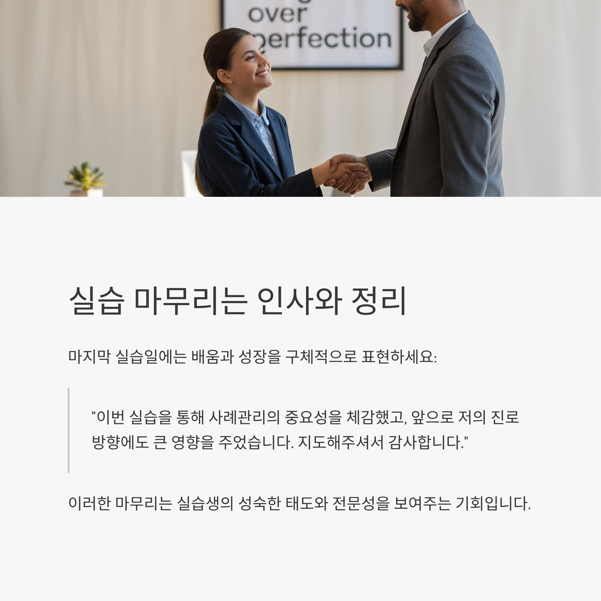 이러한 마무리는 실습생의 성숙한 태도와 전문성을 강조하는 마지막 기회이기도 합니다.