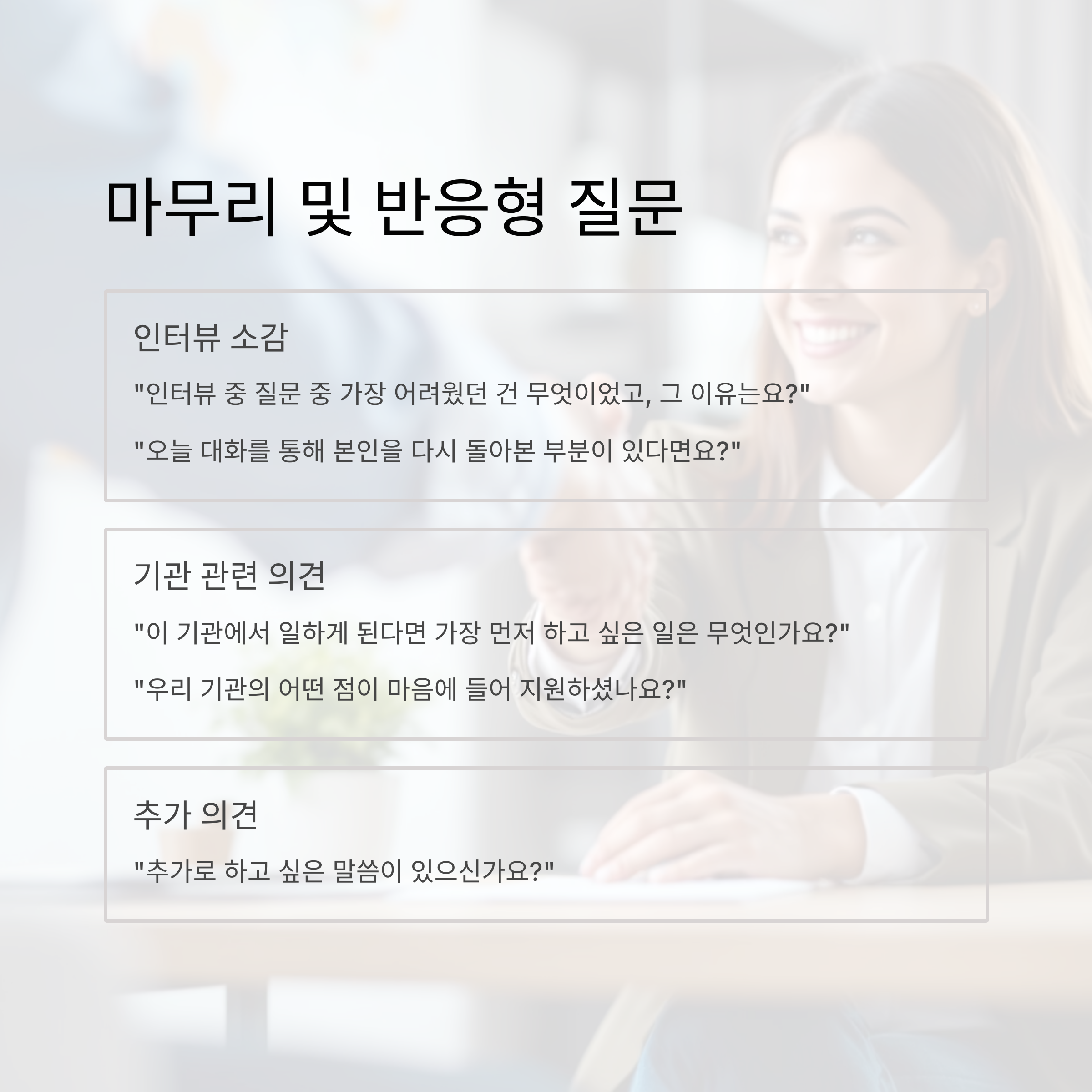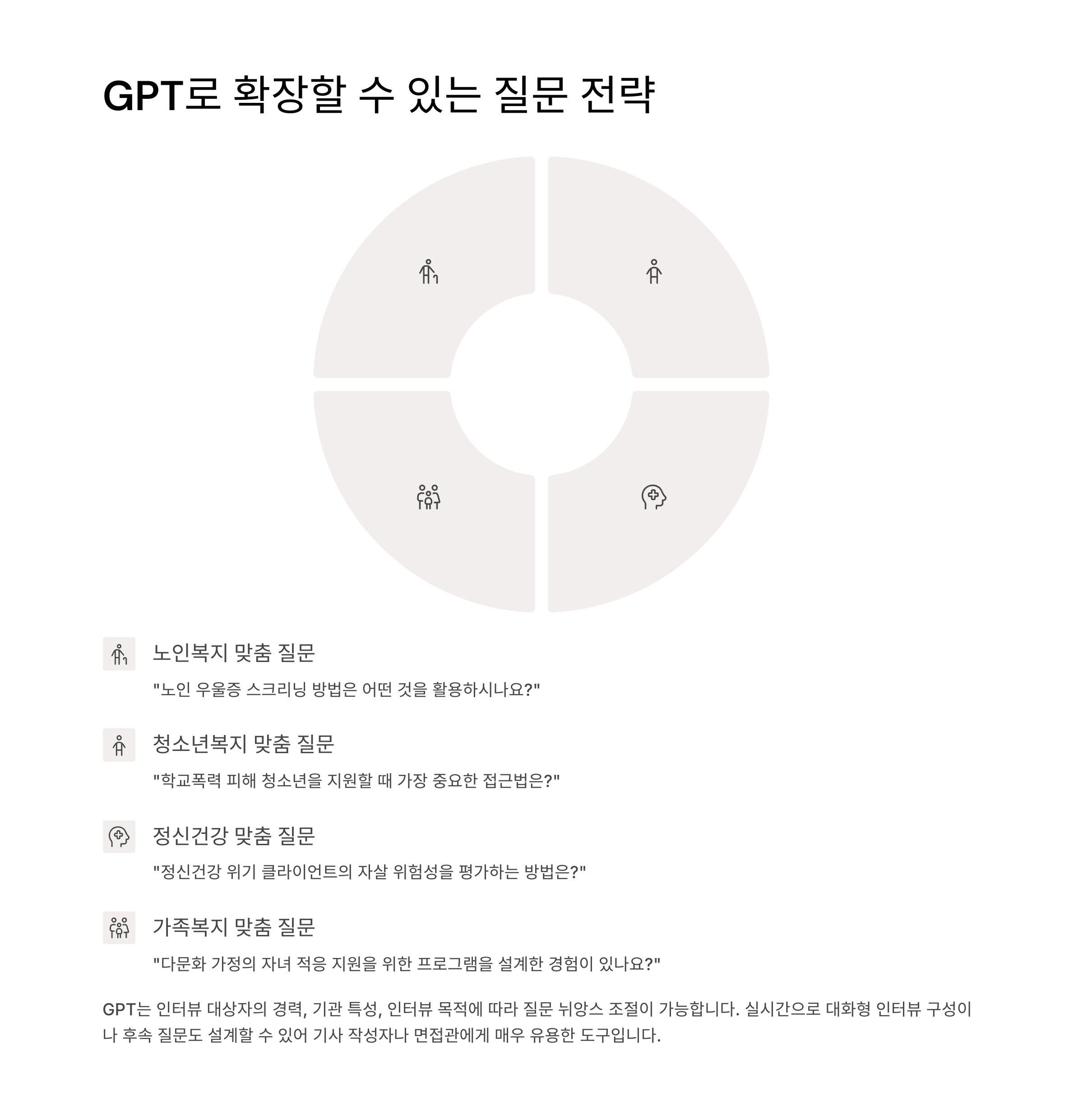 기관 특성, 인터뷰 목적에 따라 질문 뉘앙스 조절이 가능합니다.