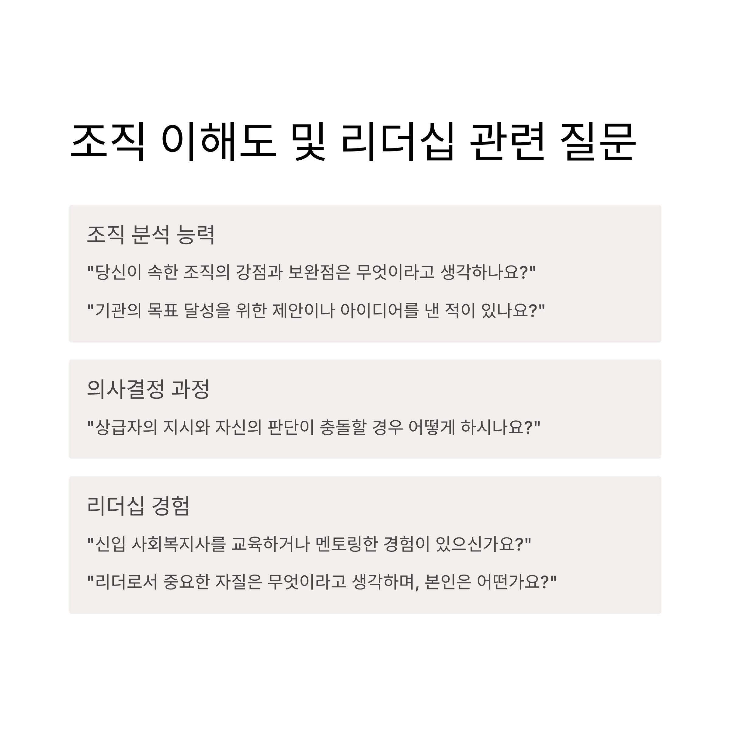 조직 이해도 및 리더십 관련 질문