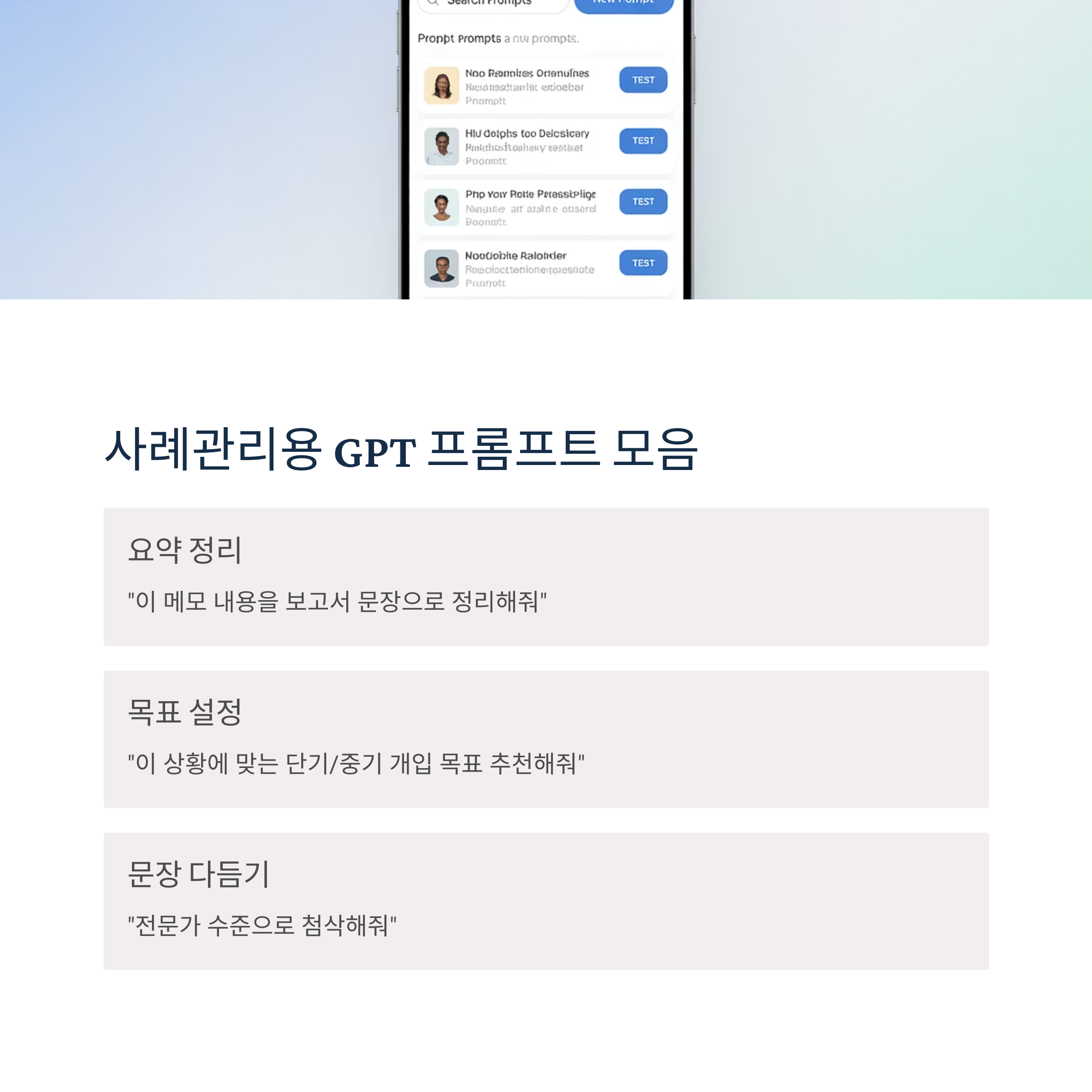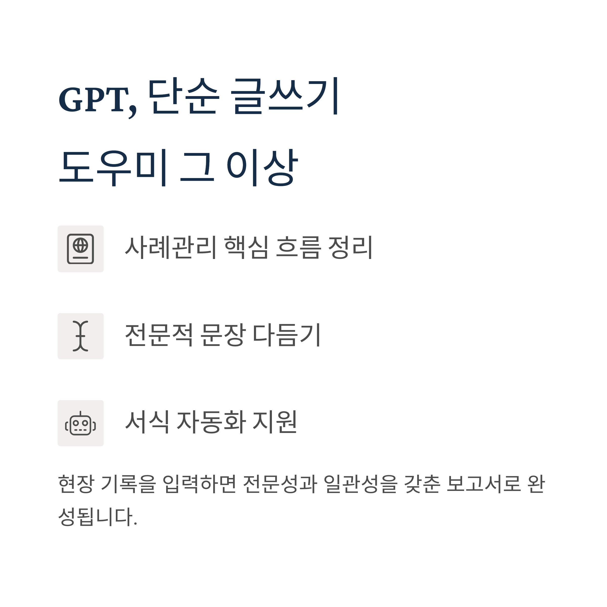 사례관리의 핵심 흐름 정리, 문장 다듬기, 서식 자동화까지 가능합니다