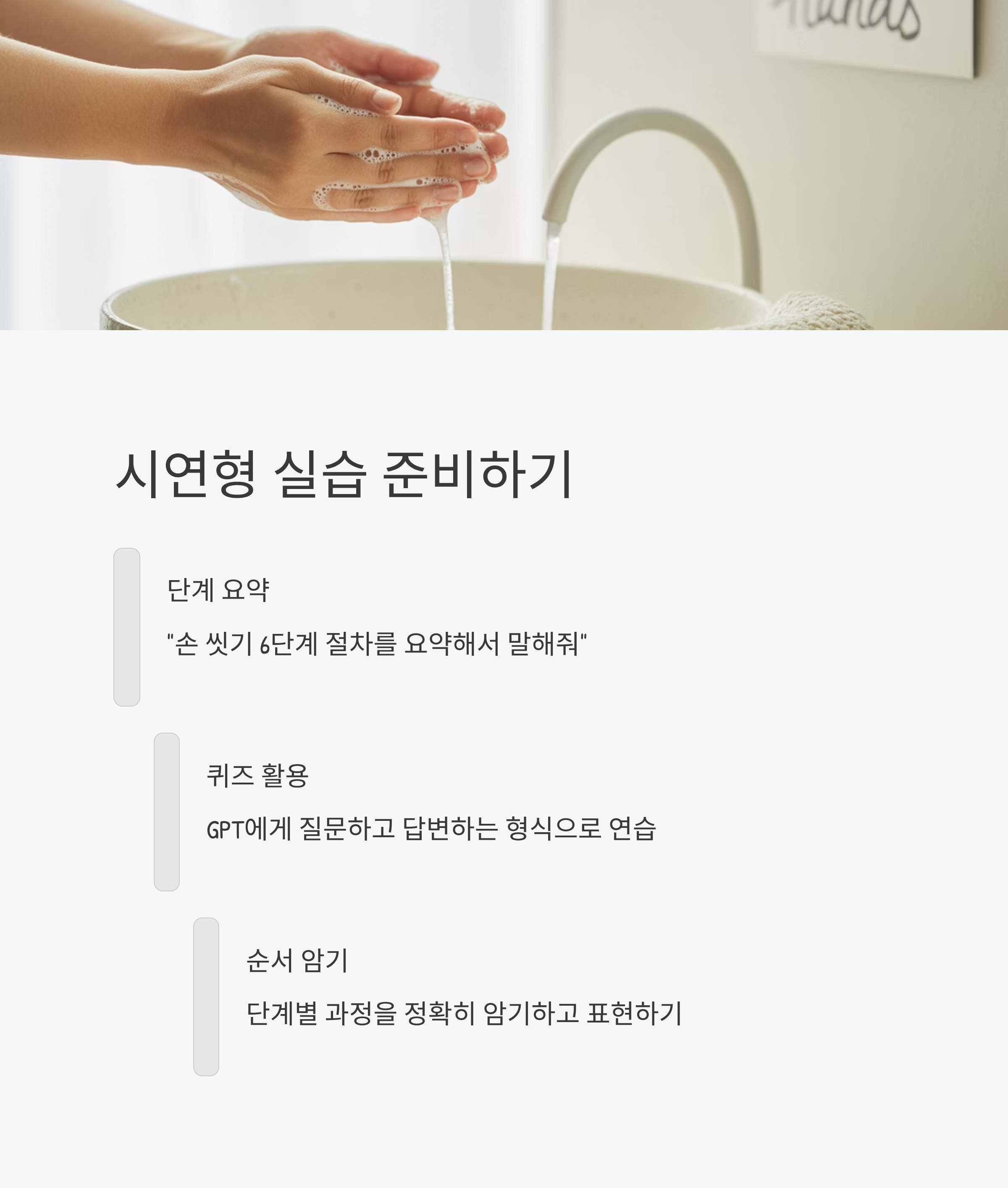 GPT에게 "손 씻기 6단계 절차를 요약해서 말해줘"라고 요청하면