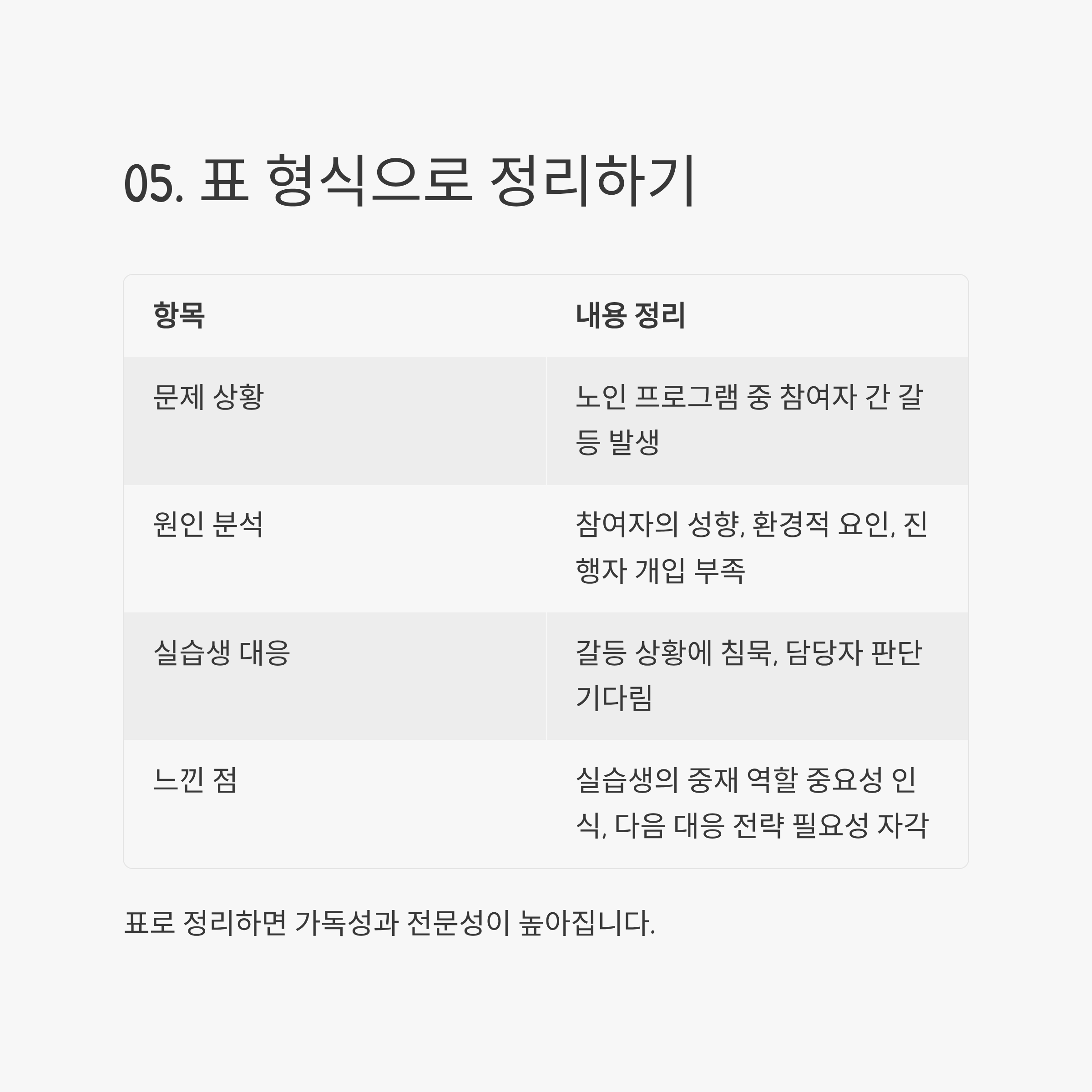 보고서에 ‘정리표’를 삽입하면 가독성과 전문성이 높아집니다.