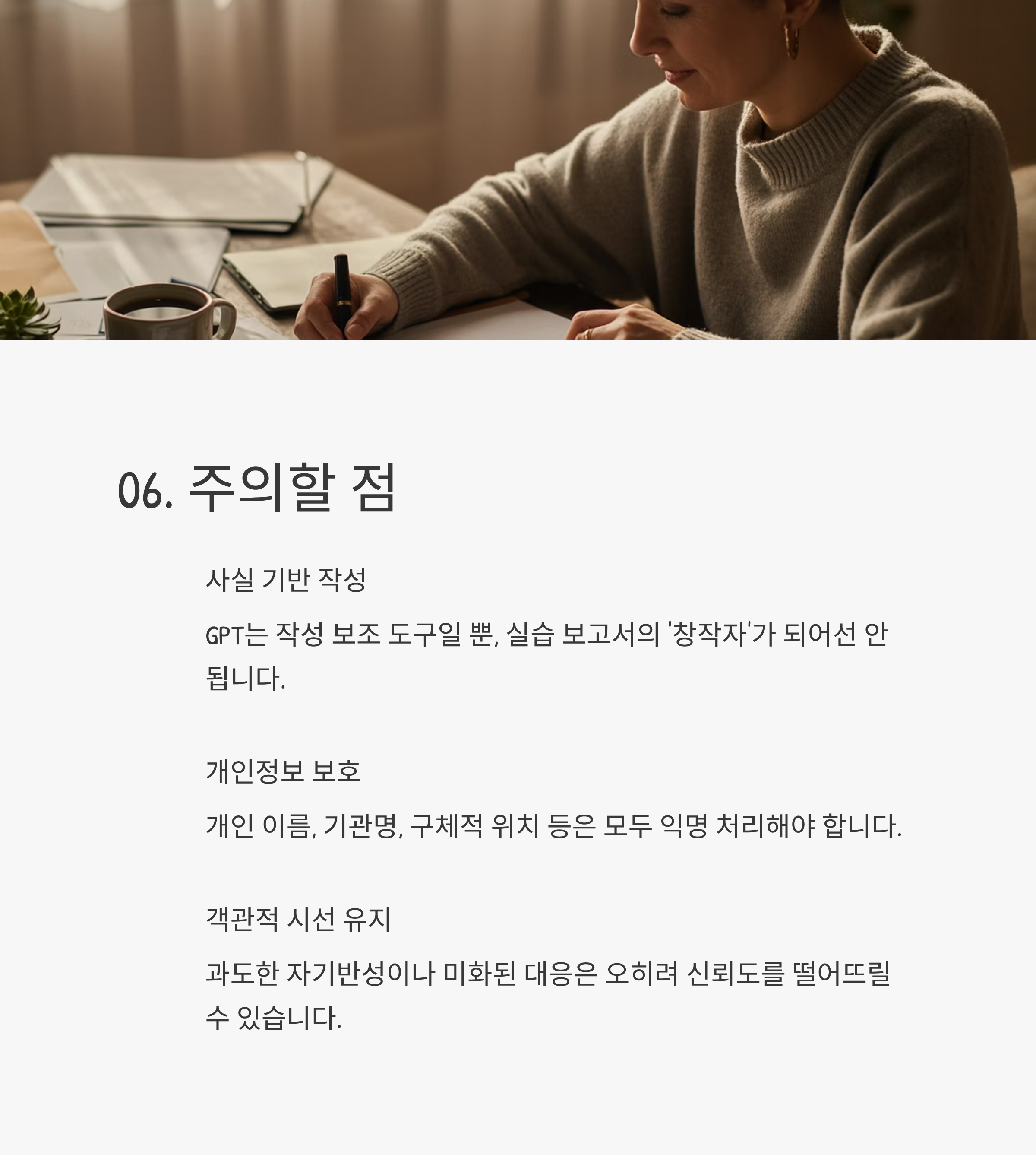 06. 주의할 점: 실명을 포함하거나 사실을 과장하지 말 것