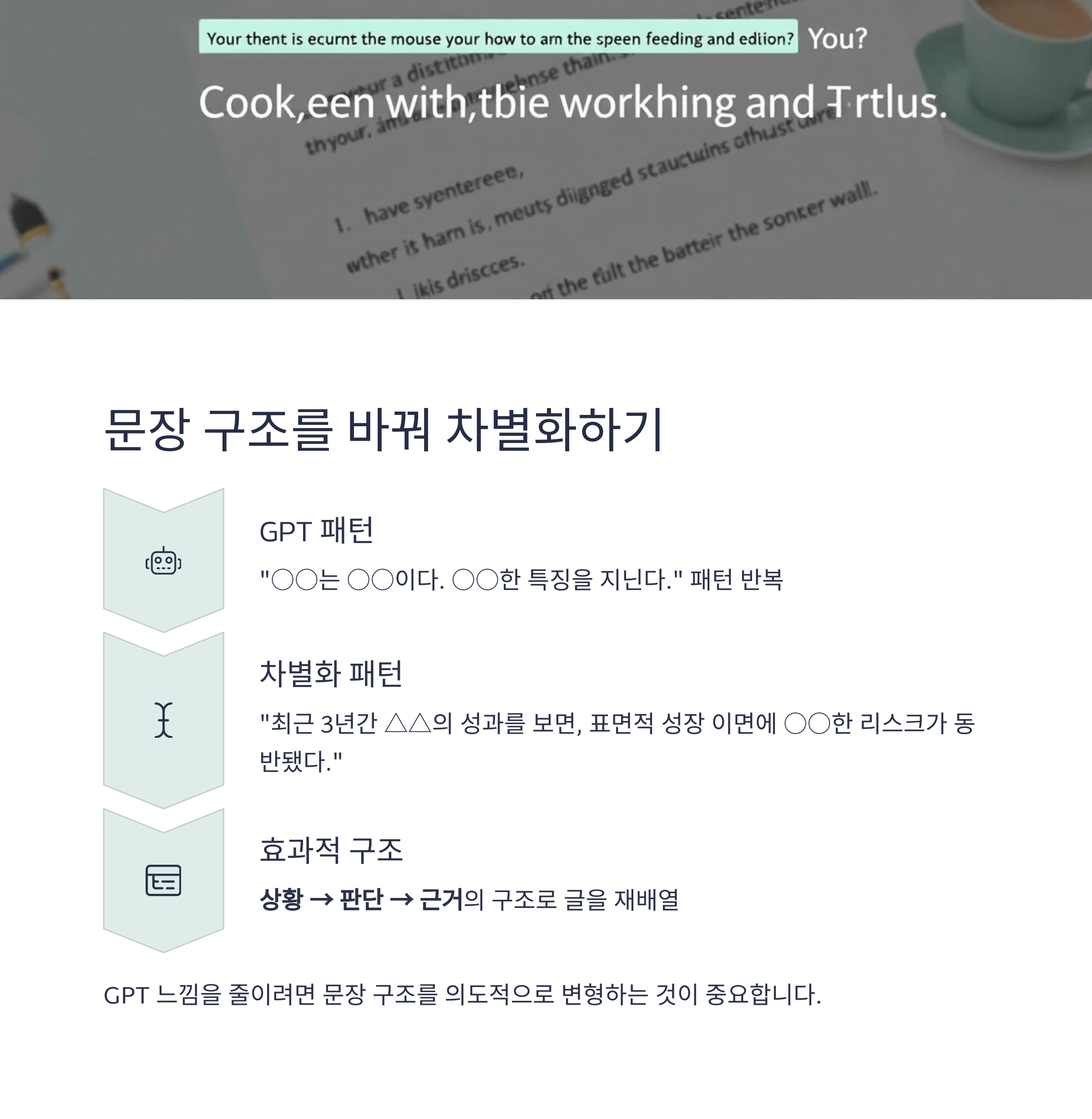 상황 → 판단 → 근거의 구조로 글을 재배열하면 GPT 느낌을 줄일 수 있습니다.