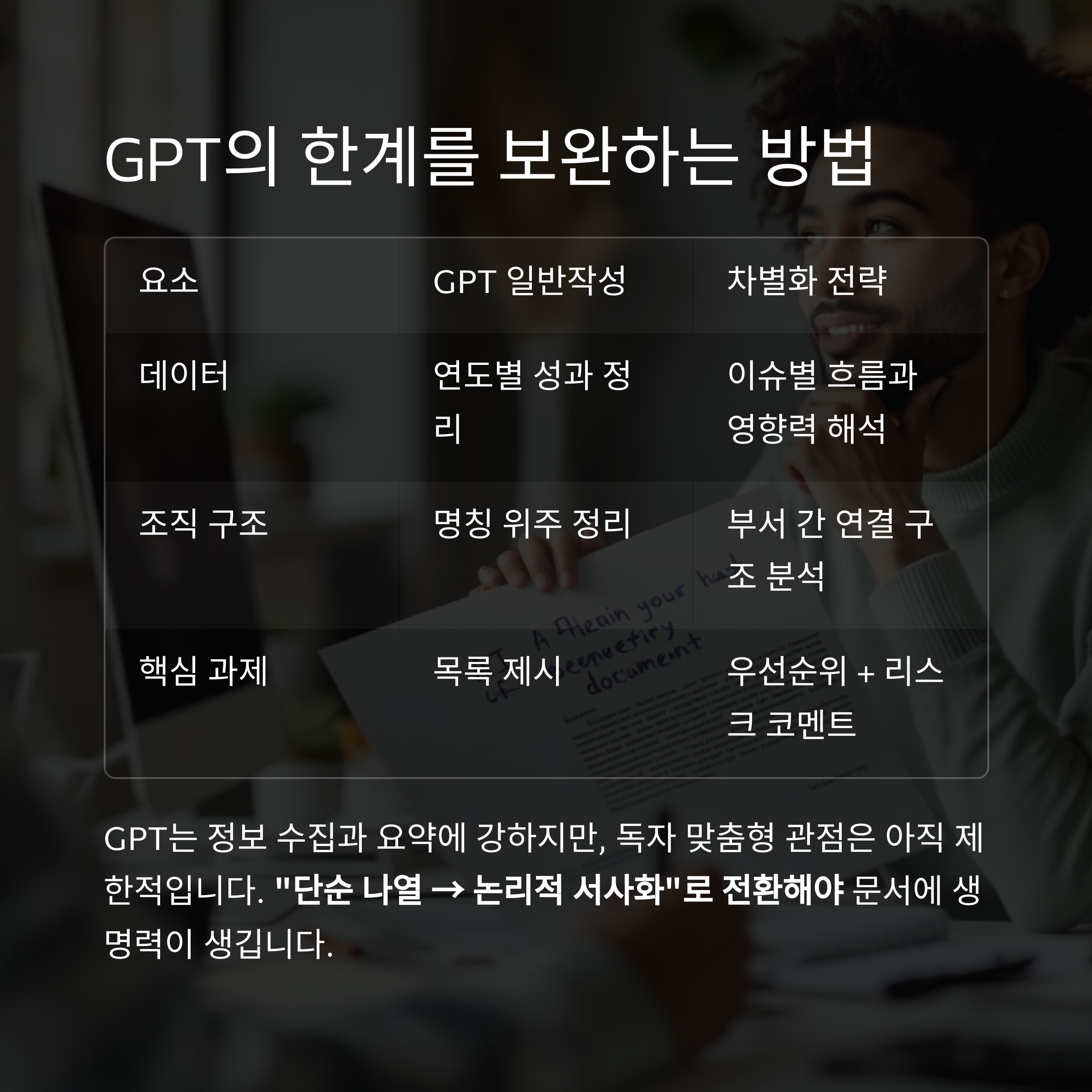 "GPT + 인간의 해석"이 만날 때만 진짜 차별화가 됩니다.