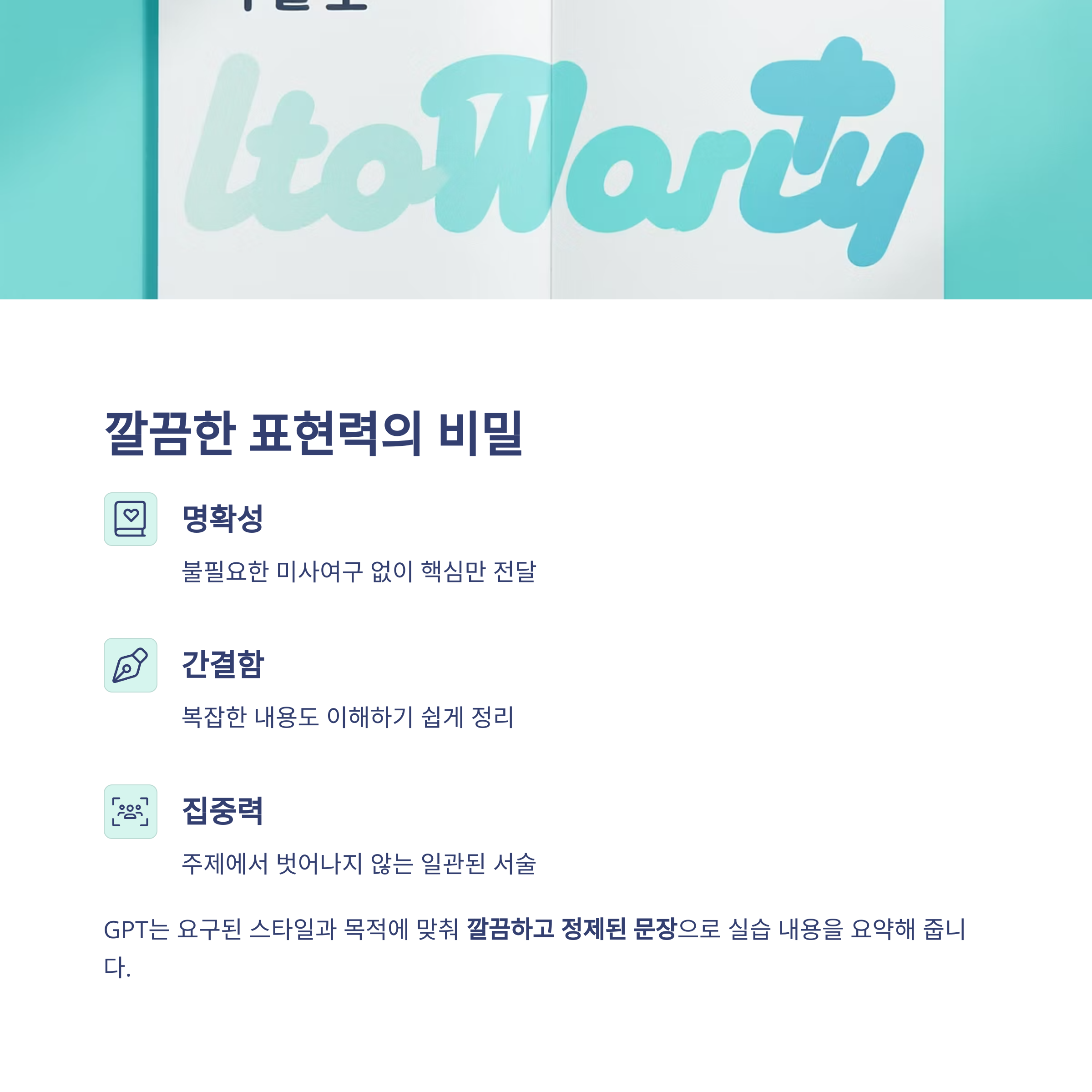 "알기 쉬운 글", "핵심이 빠르게 보이는 글"은