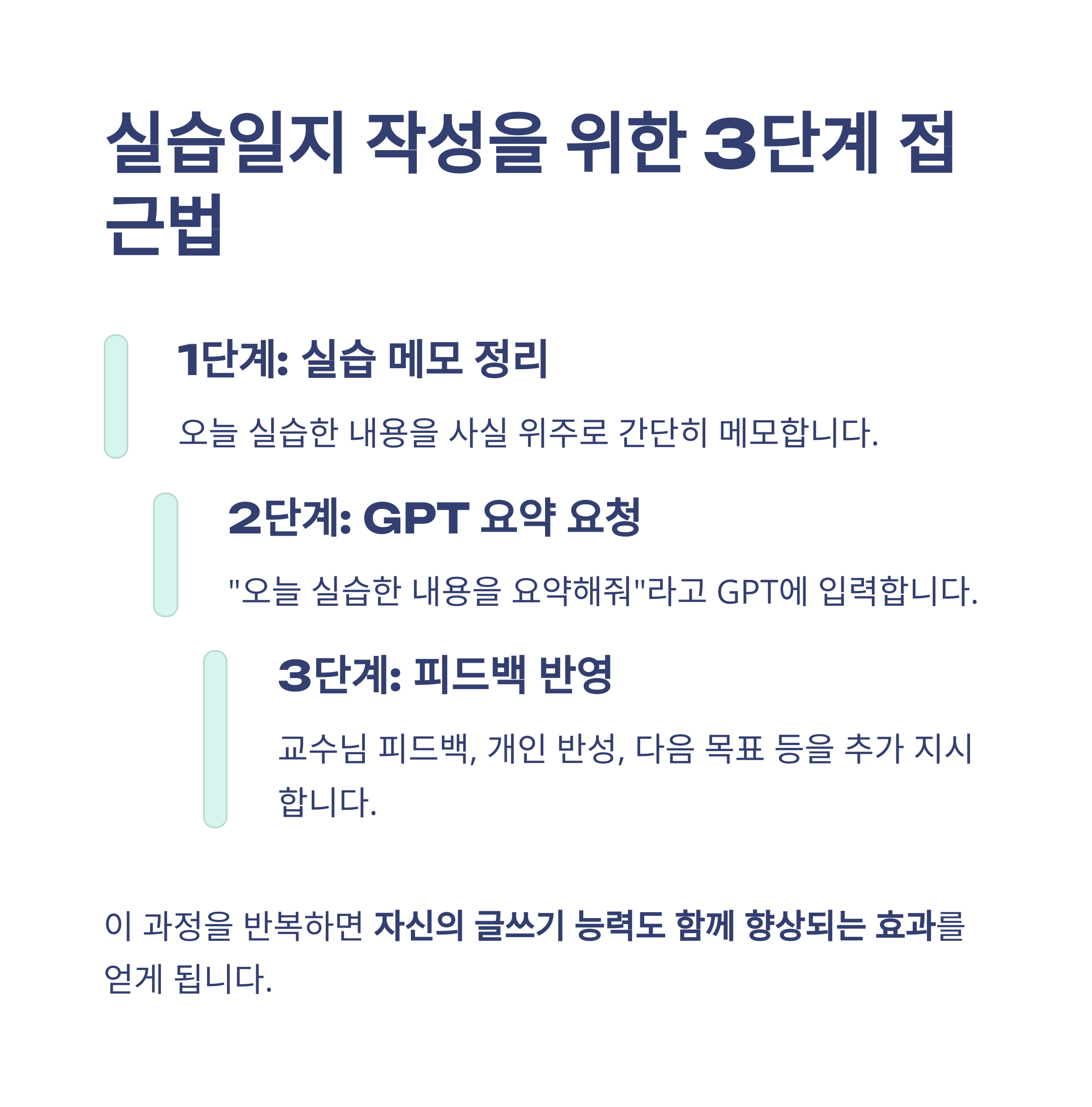 3단계: 교수님 피드백, 개인 반성, 다음 목표 등을 추가 지시