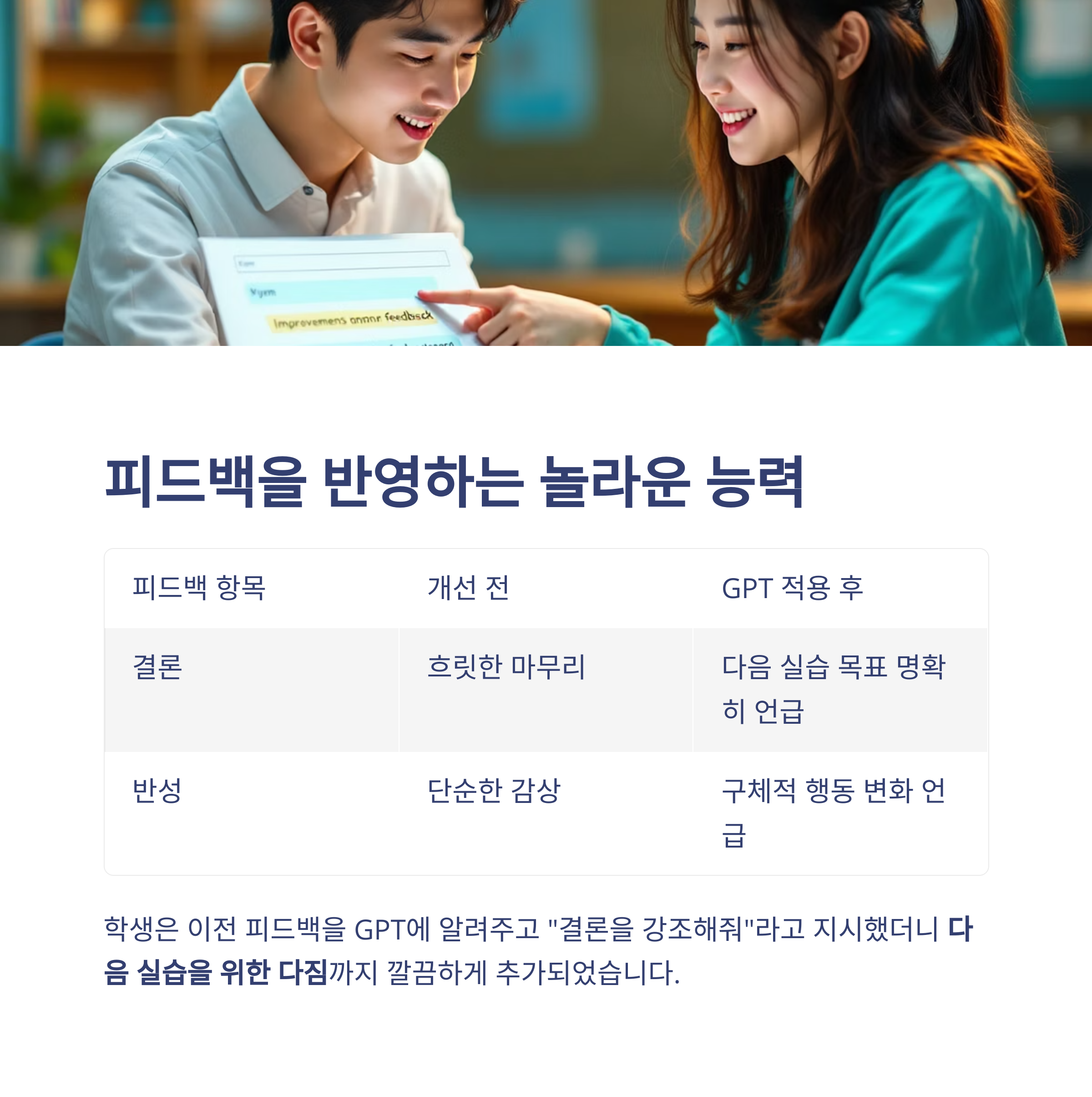 피드백 항목 개선 전 GPT 적용 후