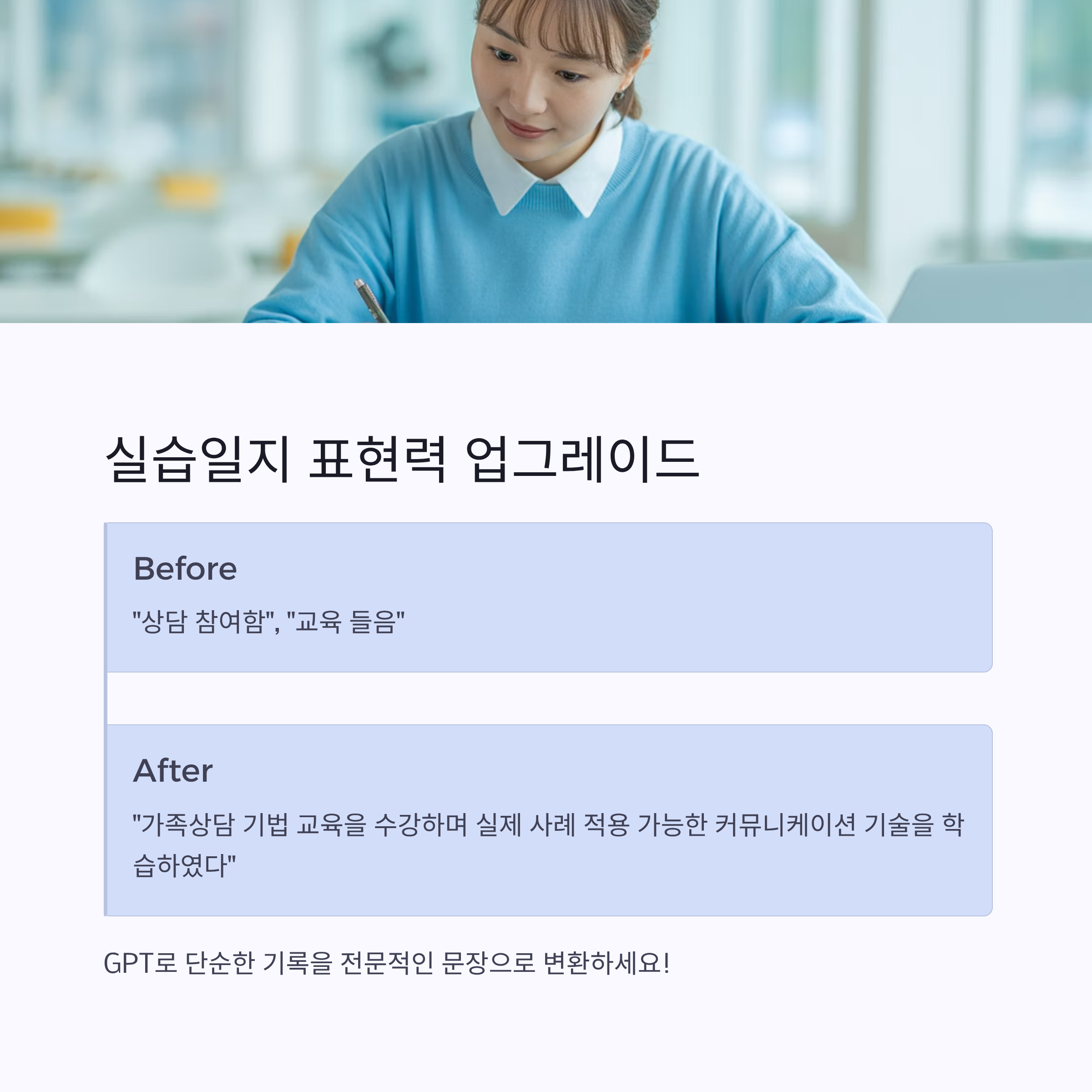 하루 활동 내용을 일지로 남길 때 너무 단순하게 “상담 참여함”, “교육 들음” 이렇게 쓰는 경우가 많아요.