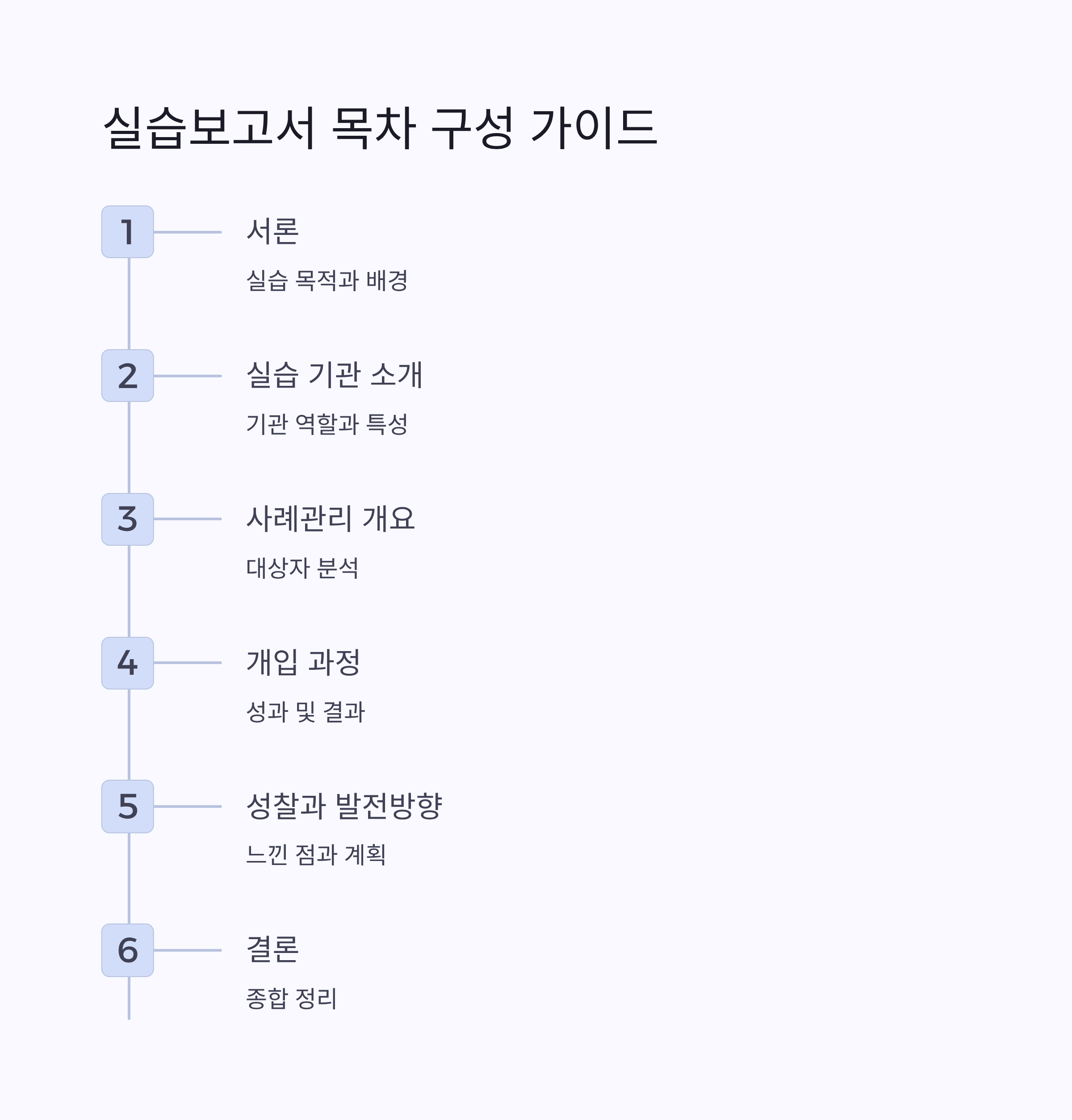 “사례관리 실습보고서 목차 구성해 줘. 서론, 본론, 결론 포함해서 5개 항목 이상으로.”