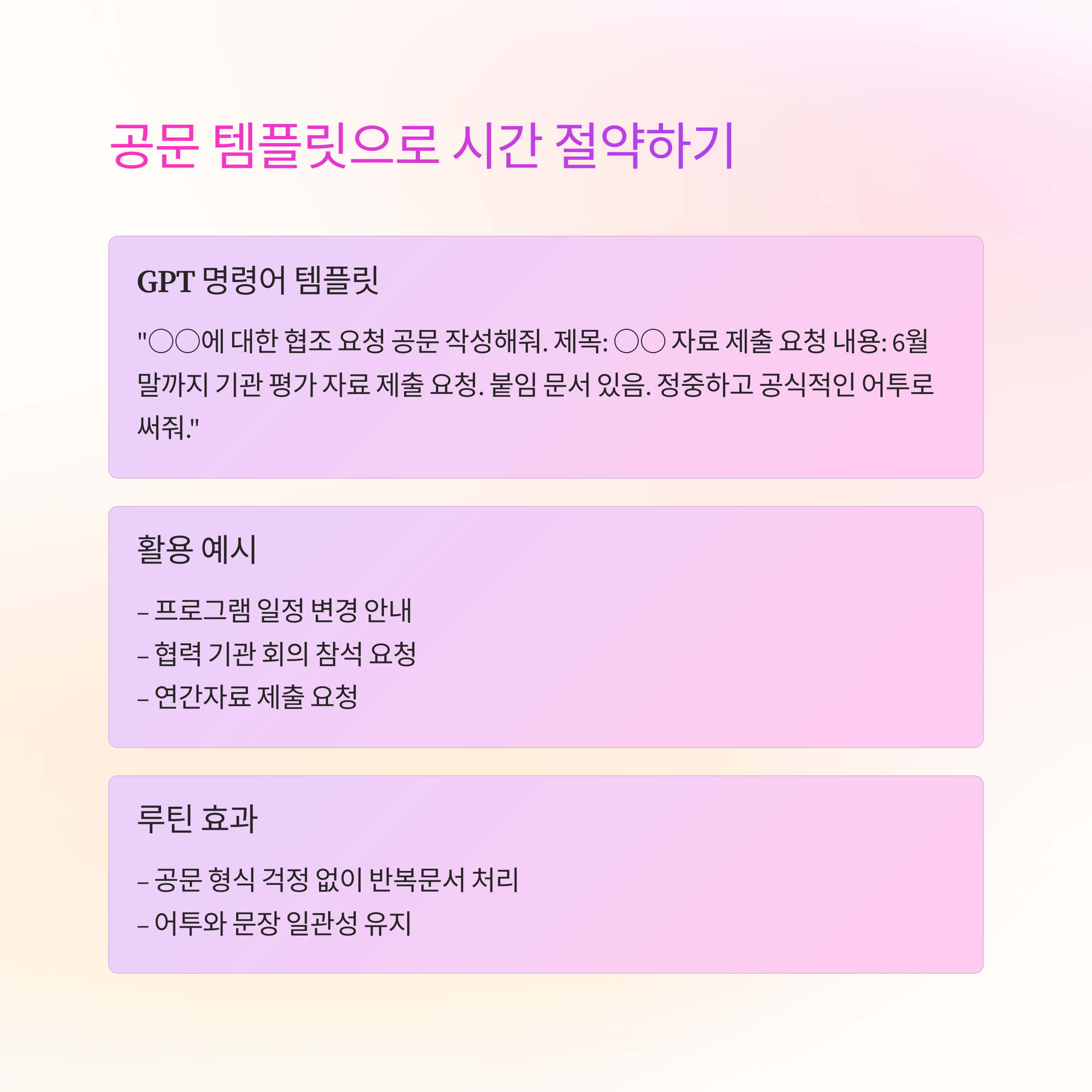 ① 공문 템플릿: 제목 + 목적 + 요청사항만 바꾸면 끝
