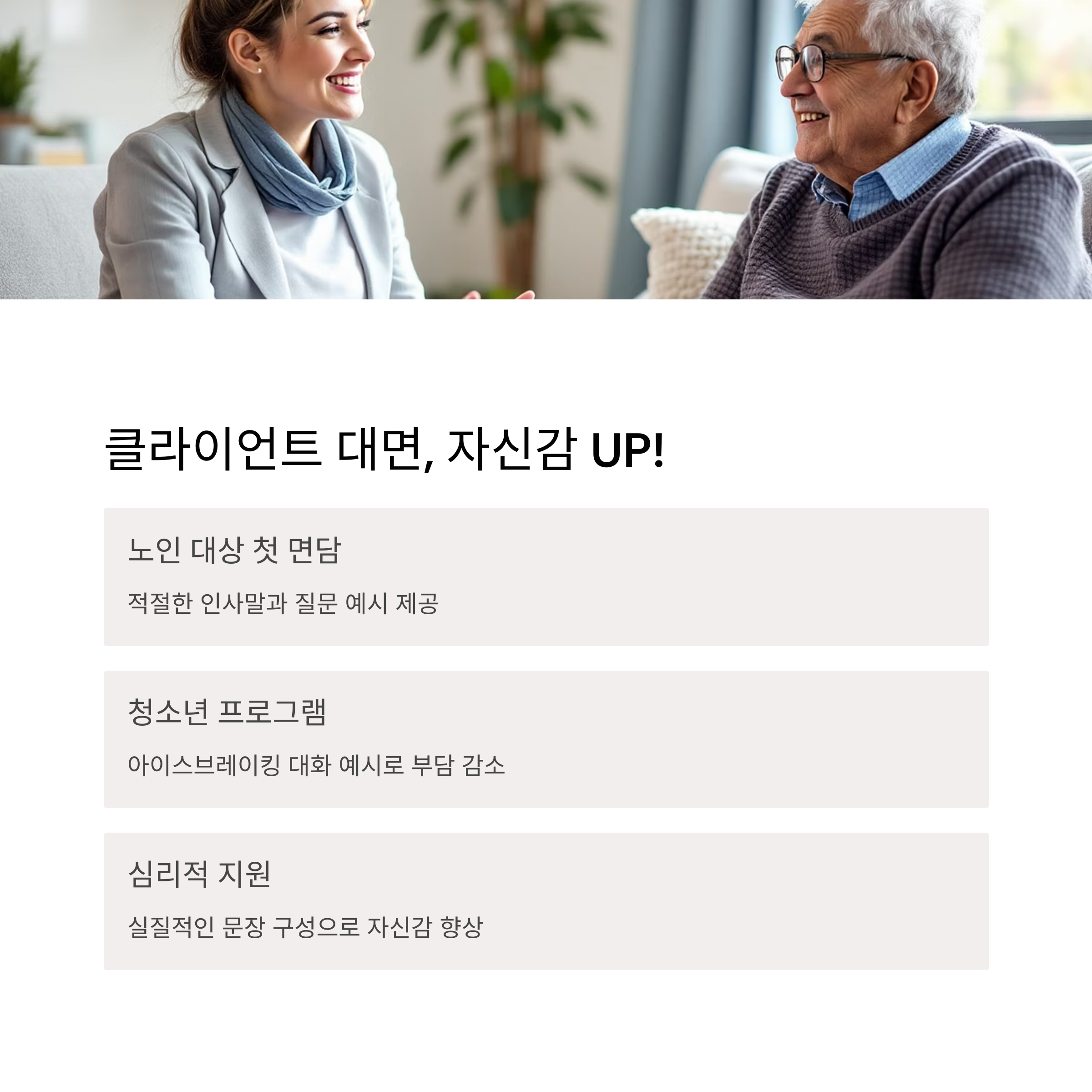 "노인 대상 첫 면담 시 사용 가능한 인사말과 질문",