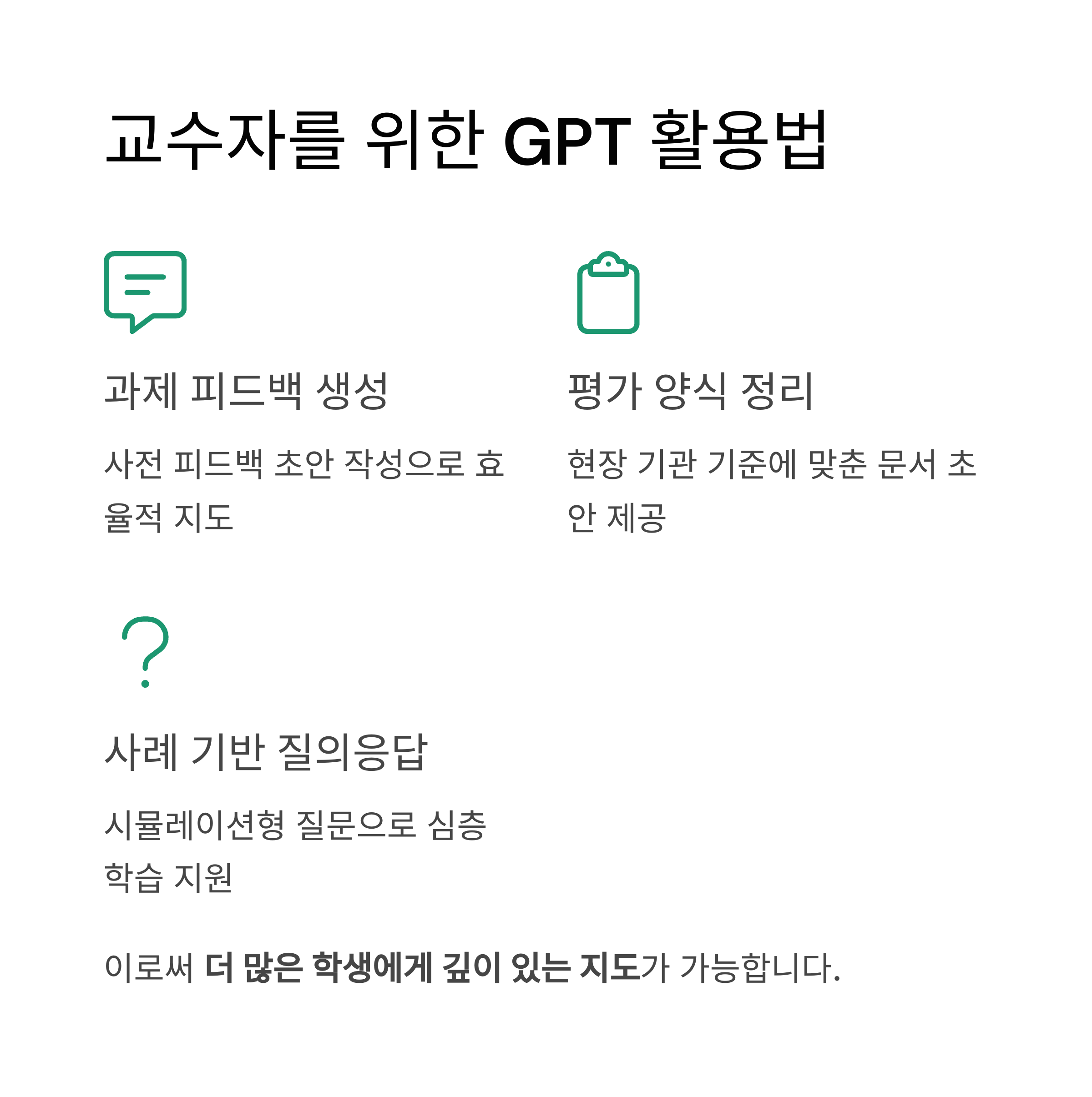 지도교수는 GPT를 활용해 다음과 같은 지원이 가능합니다.