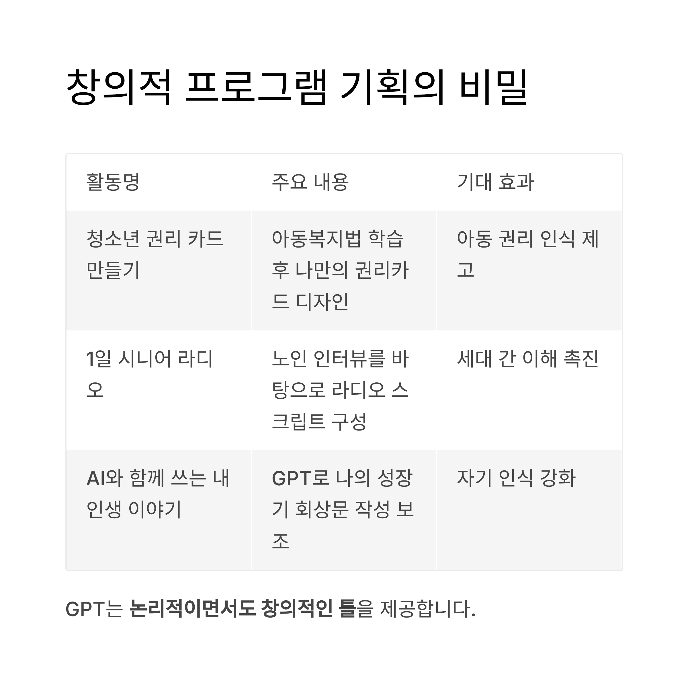 GPT는 활동의 주제 선정, 목적 설정, 진행 흐름 구성 등에서