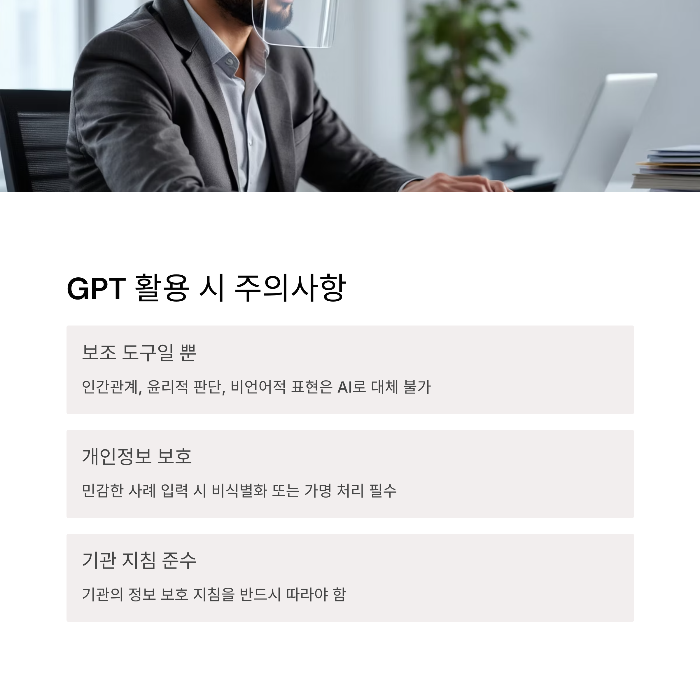 또한, 개인정보나 민감한 사례 내용 입력 시