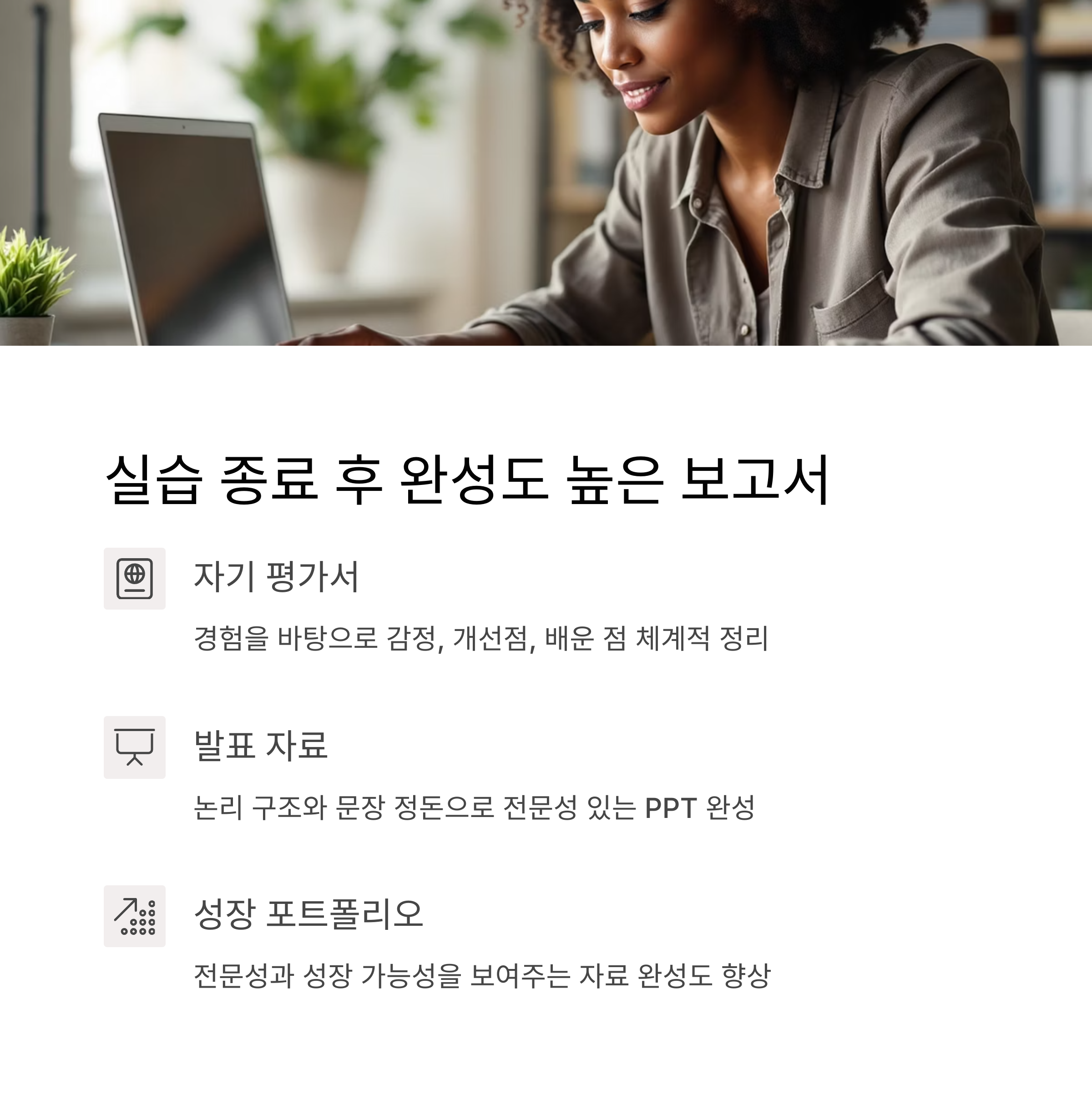 자기 평가서, 실습보고서, PPT 발표 자료 등에서도